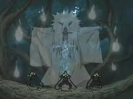 Naruto (Anime e Manga) : Sarutobi ou Terceiro Hokage invoca o Shiki Fuujin, chamando o Deus da Morte - shinigami - para esse mundo, um shinigami de aparência mais demoníaca (Assim como Ryuuku que foi citado alguns parágrafos acima), que tem a habilidade de selar a alma do alvo na barriga de seu invocador. A técnica foi criada pelo Yondaime Hokage, que a executava com muito mais maestria selando a alma da Kyuubi em seu próprio filho, Uzumaki Naruto. Sandaime foi capaz apenas de selar os braços da alma de Orochimaru. Porém, quem invoca essa técnica morre e fica na barriga do shinigami.